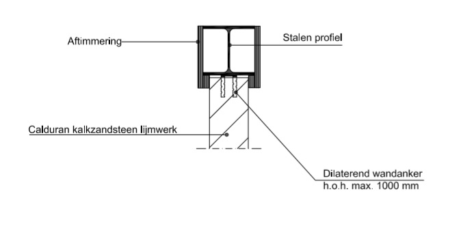 Kalkzandsteenwand op stalen ligger met hoeklijnen