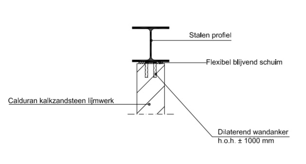 Kalkzandsteen tegen ligger met dilaterend wandanker, brandwerend afgetimmerd