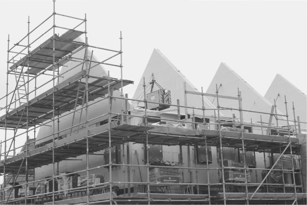 In Hoogersmilde hadden we in eerste instantie afgesproken dat we alleen voor de bouwmuren elementen konden leveren. Later ontstond er ook de wens om de topgevels in elementen uit te voeren. Op school had ik ooit wel eens de sinus, cosinus en tangens geleerd, maar op dat moment wist ik niet wat ik ermee moest. Toen we ook de topgevels gingen leveren in elementen, werden deze formules ineens erg actueel. Ik heb daarmee de eerste schuine topgevels uit kunnen rekenen.”
