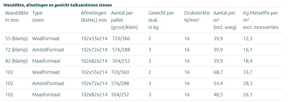 Mortelverbruik is bepaald bij een voegdikte van 10 mm.